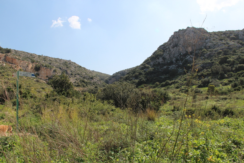 After exiting the cave, walk another 100 meters and take the blue trail. The trail wraps around the ridge, where there is a slight incline up Megedim Cliff. This brings you to a view of Mediterranean Sea.